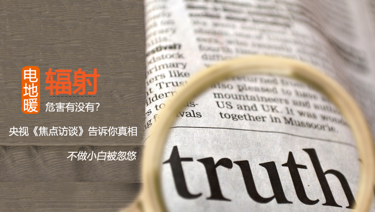 電地暖到底有沒(méi)有電磁輻射危害?業(yè)主到底應(yīng)該相信誰(shuí)?進(jìn)入內(nèi)頁(yè)看《焦點(diǎn)訪談》告訴你真相。很多業(yè)主在裝修新房選擇地暖時(shí),都會(huì)聽(tīng)到一些暖通銷售人員、甚至是裝修設(shè)計(jì)師說(shuō):電地暖有電磁輻射危害。于是很多業(yè)主往往“聞電色變”,放棄電采暖。這一決定往往會(huì)在若干年后,讓大部分業(yè)主后悔不已,為什么當(dāng)初沒(méi)選擇電地暖。而這一切的根源,就源自于當(dāng)初的一些危言聳聽(tīng)。 不做小白,不被忽悠,一起聽(tīng)聽(tīng)央視焦點(diǎn)訪談專家怎么說(shuō)?...